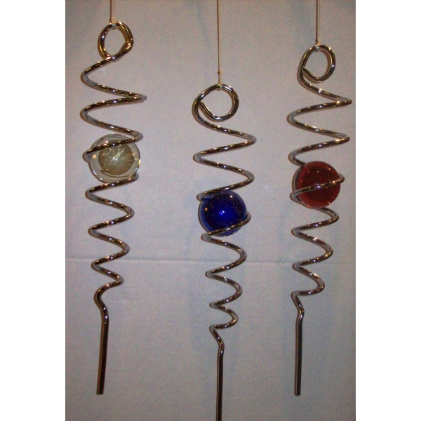 Metal: tysk sølv med farvet glaskugle.